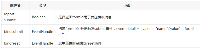 当点击 <form/> 表单中 formType 为 submit 的 <button/> 组件时,会将表单组件中的 value 值进行提交,需要在表单组件中加上 name 来作为 key。
