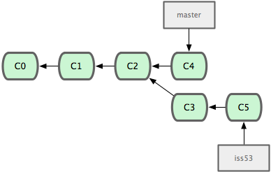 现在,你决定要修补问题追踪系统上的 #53 问题。顺带说明下,Git 并不同任何特定的问题追踪系统打交道。这里为了说明要解决的问题,才把新建的分支取名为 iss53。要新建并切换到该分支,运行git checkout 并加上 -b 参数: