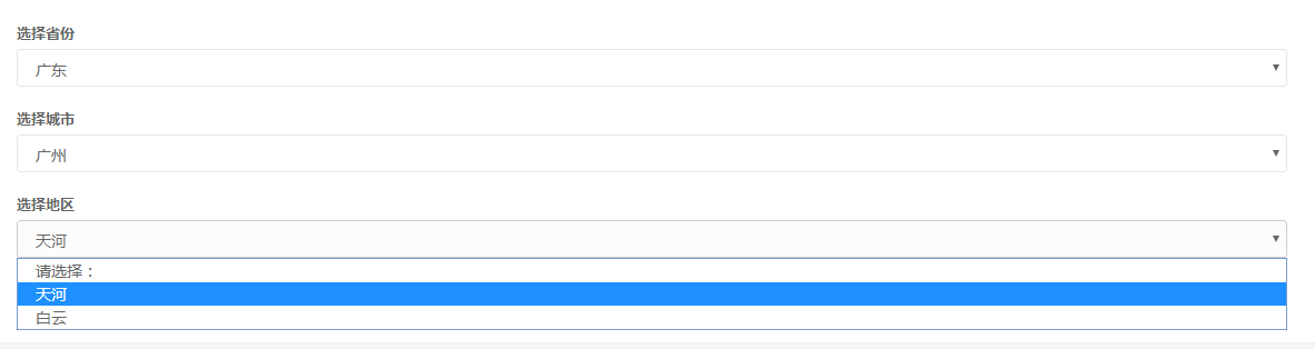 比如做个省份城市联动,这里最后一级是城市,没有地区。