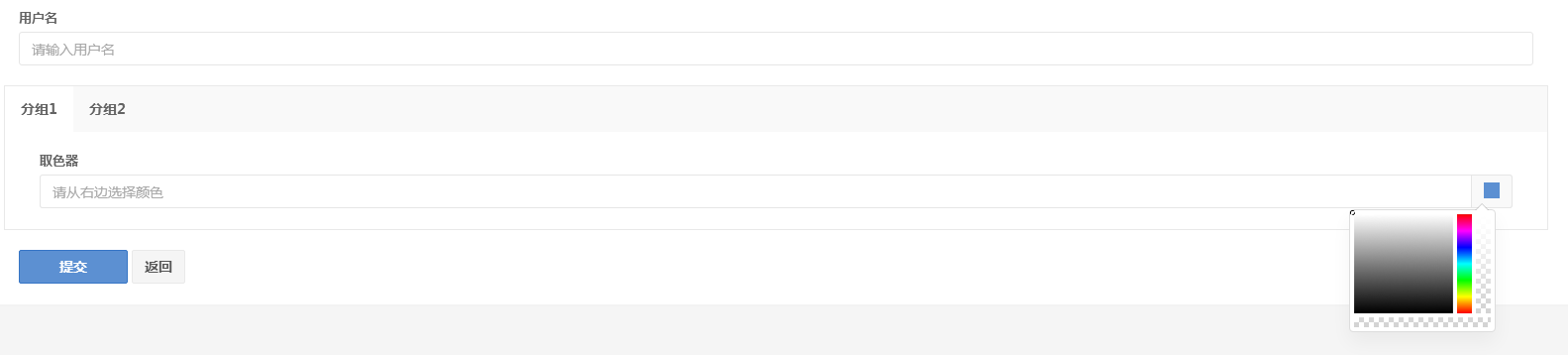 ->addFormItem("test", "color", "取色器")