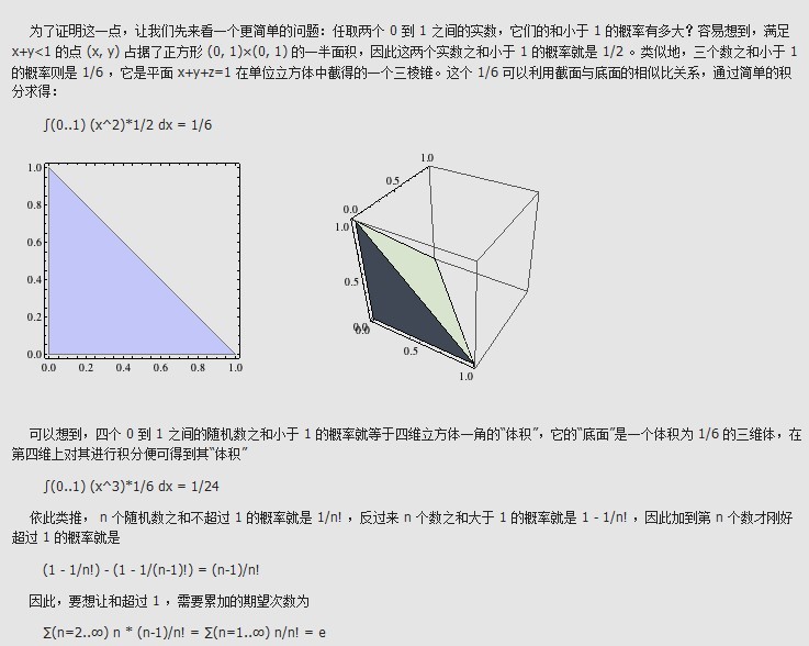 11、平均要取多少个(0,1)中的随机数才能让和超过1。