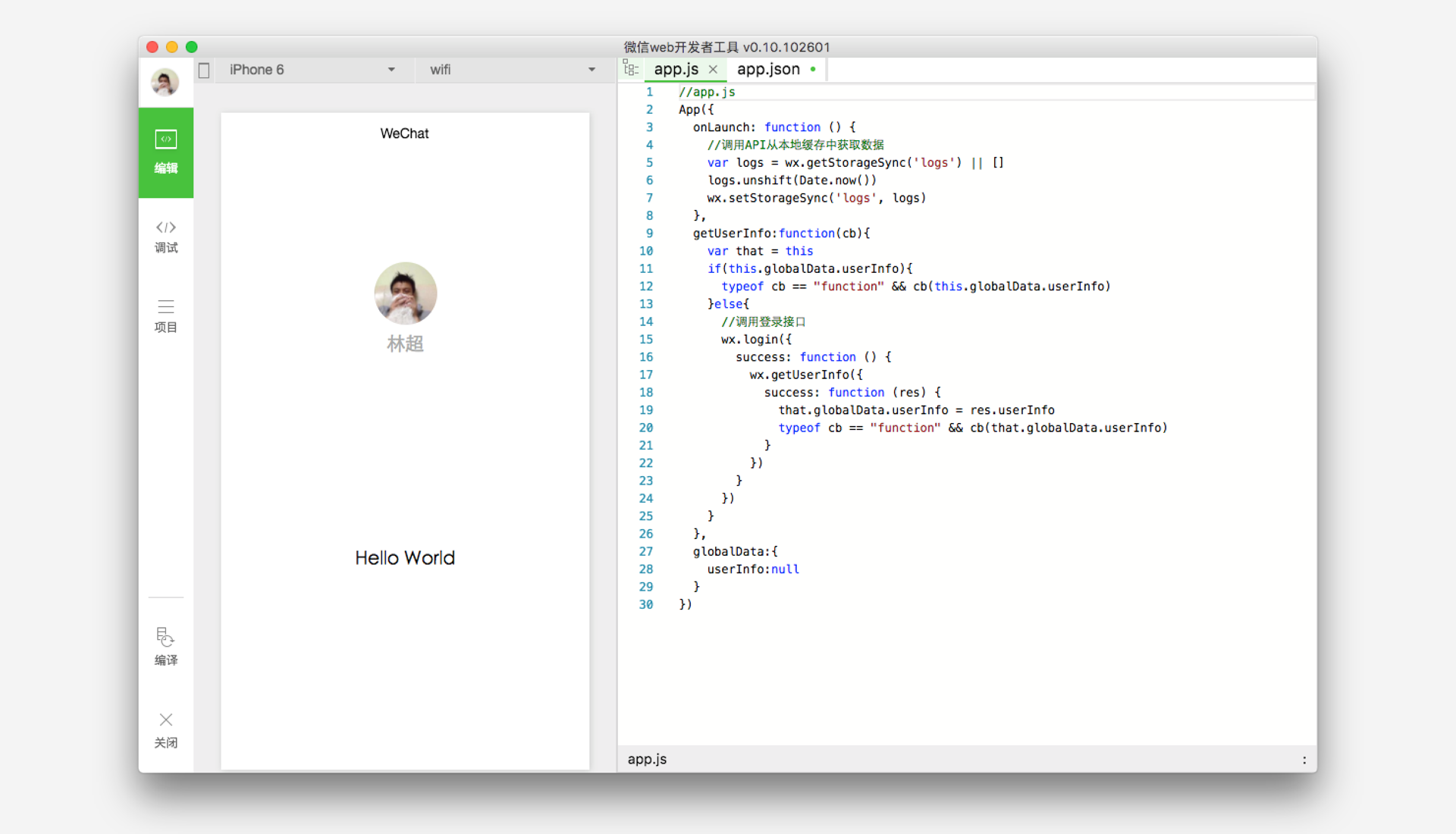 工具目前提供了4种文件的编辑:wxml、wxss、js、json以及图片文件的预览。