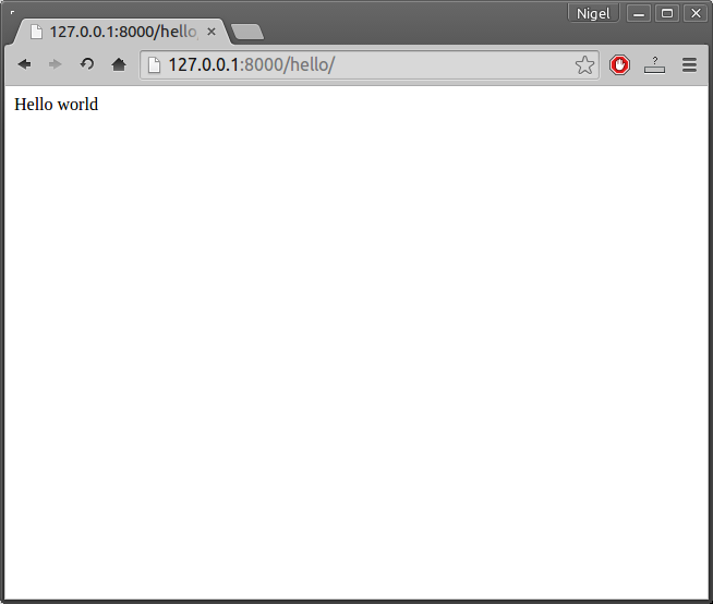 Our “Hello world” view is simple. Here’s the entire function, plus import statements, which you should type into the views.py file: