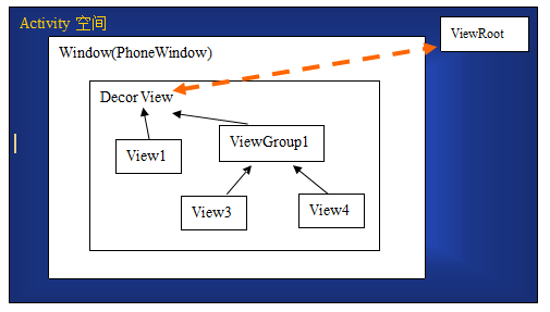 DecorView实际上是一个ViewGroup。在依存关系上来讲,对看个主窗口来讲,DecorView是Top-Level View.View并不是关注的重点,重要的是我们如何需要知道分发路径是建立在什么关系上的。View的成员变量mParent用来管理View上级关系的。而ViewGroup顾名思义就是一组View的管理,于是在ViewGroup构建了焦点管理和子View节点数组。这样通过View的mParent和ViewGroup的mChildren构建了Android中View直接的关系网。