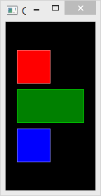 注意,我们按照红、绿、蓝的顺序加入了子组件,Column按照同样的顺序把它们添加进来。其中,我们独立设置了绿色矩形的宽度,这体现了我们后来设置的属性覆盖了组件定义时设置的默认值。anchors是另外一种布局方式,指定该组件与父组件的相对关系。我们会在后面的章节详细介绍这种布局。