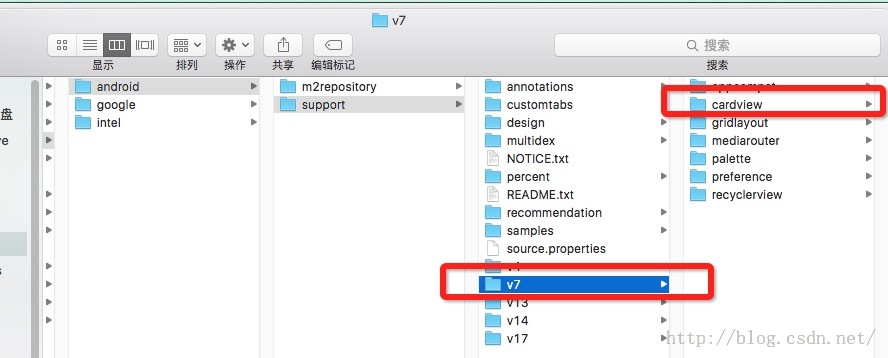 我们知道CardView组件是Android L开始引入,同时Google也做了兼容包在V7包里边了,具体我们来看一下项目存在的路径:
