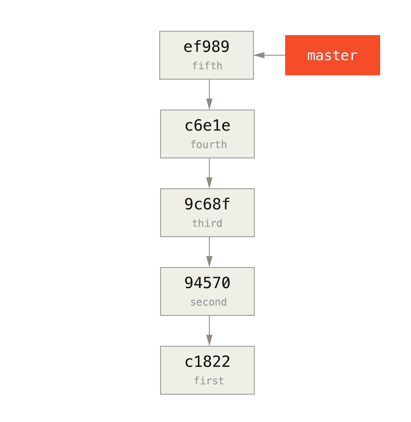 ef989d8 (HEAD, master) fifth commit