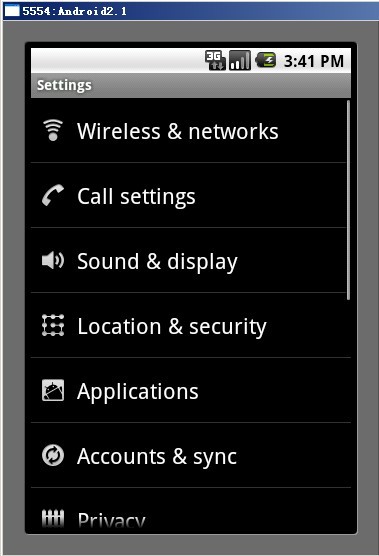 package com.android.tutor;import android.app.Activity;import android.content.Intent;import android.os.Bundle;import android.view.Menu;import android.view.MenuInflater;import android.view.MenuItem;public class MenuInflaterDemo extends Activity { @Override public void onCreate(Bundle savedInstanceState) { super.onCreate(savedInstanceState); setContentView(R.layout.main); } @Override public boolean onCreateOptionsMenu(Menu menu) { MenuInflater inflater = getMenuInflater(); inflater.inflate(R.menu.options_menu, menu); return true; } @Override public boolean onOptionsItemSelected(MenuItem item) { switch (item.getItemId()) { case R.id.menu_add: break; case R.id.menu_wallaper: break; case R.id.menu_search: break; case R.id.menu_setting: showSettings(); break; } return super.onOptionsItemSelected(item); } private void showSettings(){ final Intent settings = new Intent(android.provider.Settings.ACTION_SETTINGS); settings.setFlags(Intent.FLAG_ACTIVITY_NEW_TASK | Intent.FLAG_ACTIVITY_RESET_TASK_IF_NEEDED); startActivity(settings); }}