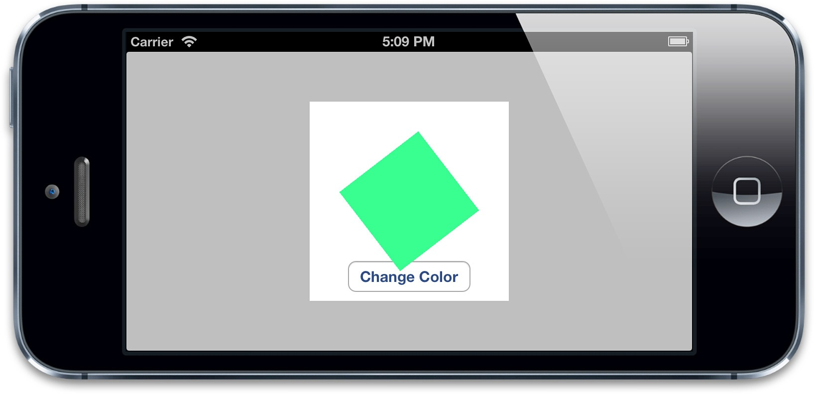 基于UIView的block的动画允许你在动画结束的时候提供一个完成的动作。CATranscation接口提供的+setCompletionBlock:方法也有同样的功能。我们来调整上个例子,在颜色变化结束之后执行一些操作。我们来添加一个完成之后的block,用来在每次颜色变化结束之后切换到另一个旋转90的动画。代码见清单7.3,运行结果见图7.2。