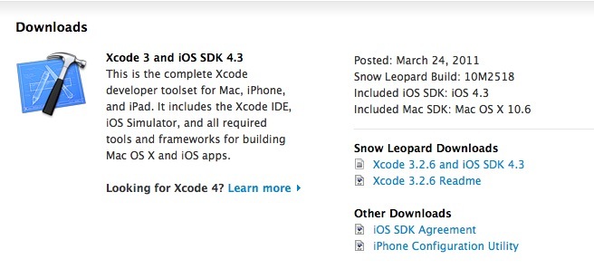 下载成功之后的文件名: xcode_3.2.6_and_ios_sdk_4.3.dmg (4.44GB)