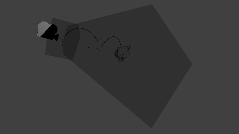 现在,物体所有顶点都位于世界坐标系。下图中黑色箭头的意思是:从模型坐标系(Model Space)(顶点都相对于模型的中心定义)变换到世界坐标系(顶点都相对于世界坐标系中心定义)。