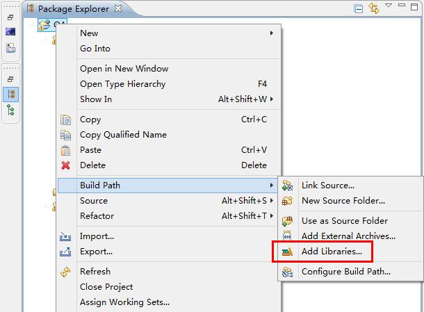选中项目,右键Build Path——Add Libraries。