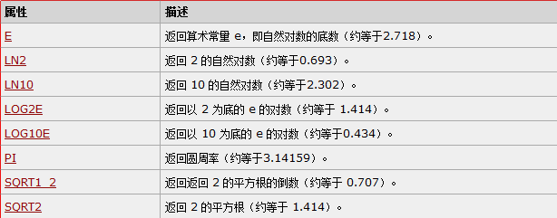 Math 对象并不像 Date 和 String 那样是对象的类,因此没有构造函数 Math(),像 Math.sin() 这样的函数只是函数,不是某个对象的方法,通过把 Math 作为对象使用就可以调用其所有属性和方法。