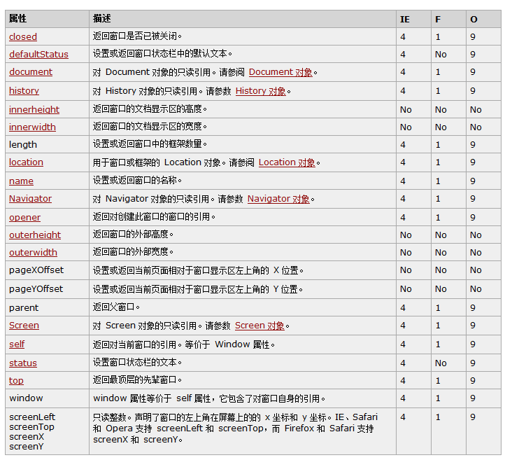 4、获取窗口引用:window[index] 或 window[name]:根据索引或者名称获取window对象,属性如下:
