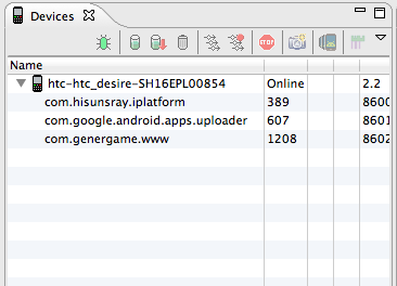 3)最后便可以像文档中所说的,在elipse做最后的联机调试,需要说明的是,我在模拟器上运行是报错的,需要用真机调试,我使用的是HTC-G7调试,这个页面的帧率在58左右,跑cocos2dxjs自带的模板时,有很多西瓜的那个页面帧率基本是30-40,可以看出js在android上的效率还是不错的。