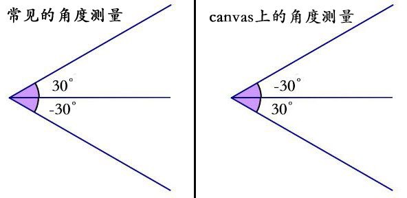 也正是因为y轴正方向的不同,所以导致角度测量也是不同的,如下图: