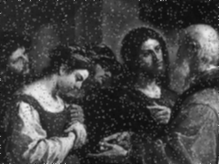 这里还是可以明显的感觉到不同的, 没有好坏之分,就是第二幅图片看上去更为平滑。 继续我们的问题, 那这里均值平滑是否具有去除噪声的功能呢? 我们搞来了椒盐噪声(就是随机的白点,黑点)来试试手: