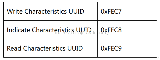 即写characteristics的UUID是0xfec7, indicate characteristics的UUID是0xfec8. 这两个是必须的。而read characteristics UUID不支持也没有问题。