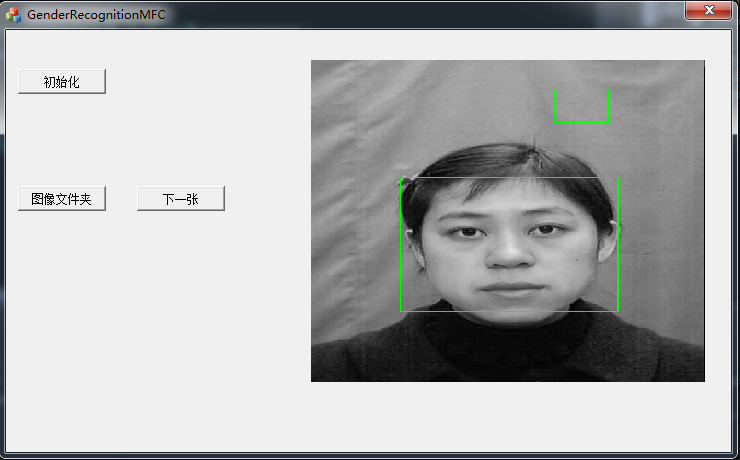 这里我们初步完成了MFC中的人脸检测功能,但这里存在两个严重的BUG,一是如果用户未单击“初始化”按钮,直接打开图片,程序会因缺少必要的初始化步骤而直接崩溃;二是如上图所见,OpenCv在进行人脸检测时可能会错误检测出多个矩形,其中只有一个矩形包含人脸,其余的都是干扰,需要进行处理,我们将在下一篇博客中介绍如何解决这两个BUG。