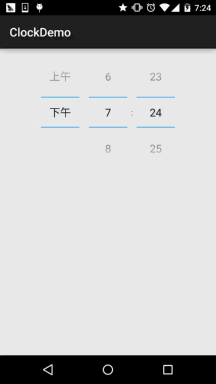 样子还是蛮标致的哈,我们发现官方给我们提供的属性只有一个: android:timePickerMode:组件外观,同样可选值为:spinner和clock(默认) 前者是旧版本的TimePicker~ 而他对应的监听事件是:TimePicker.OnTimeChangedListener
