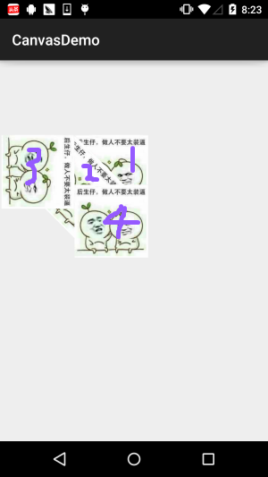 嗯,rotate()弄懂了是吧,那就行,接着我们来试试restore咯~我们在最后绘图的前面 加两个restore()!