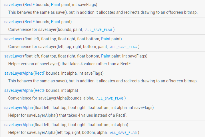canvas.saveLayer(bounds, mPaint, Canvas.CLIP_TO_LAYER_SAVE_FLAG);