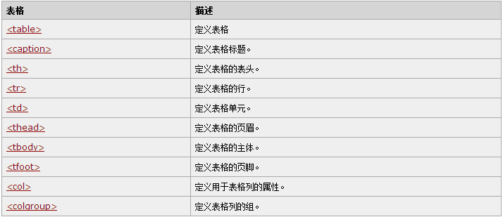 表中格标签中还可以嵌套其他标签,也可以进行各种花式的设计,背景色或背景图片等。也可以在表格排列数据内容。在表格标签列表中的后五个标签可以增加更丰富的表格设计。