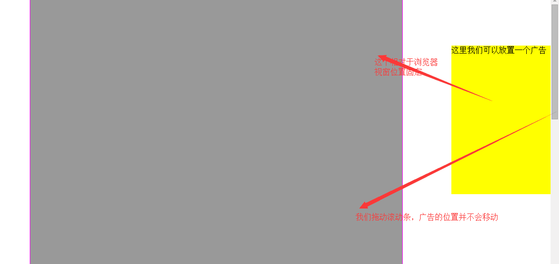 这个我们应该在浏览网页的时候经常见,比如一些广告并不会随着我们向下看内容而消失,它们一直处于基于视窗的某个位置不动。我们打开新浪首页可以看到: