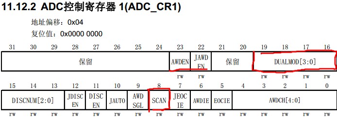这里我们用独立模式0000b,在此模式中,双ADC同步不工作,每个ADC接口独立工作;