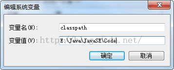 b)变量值:设定为指定的含有class文件的目录,多个目录间使用分号(;)分割。我指定的目录是:E:JavaJavaSECode;