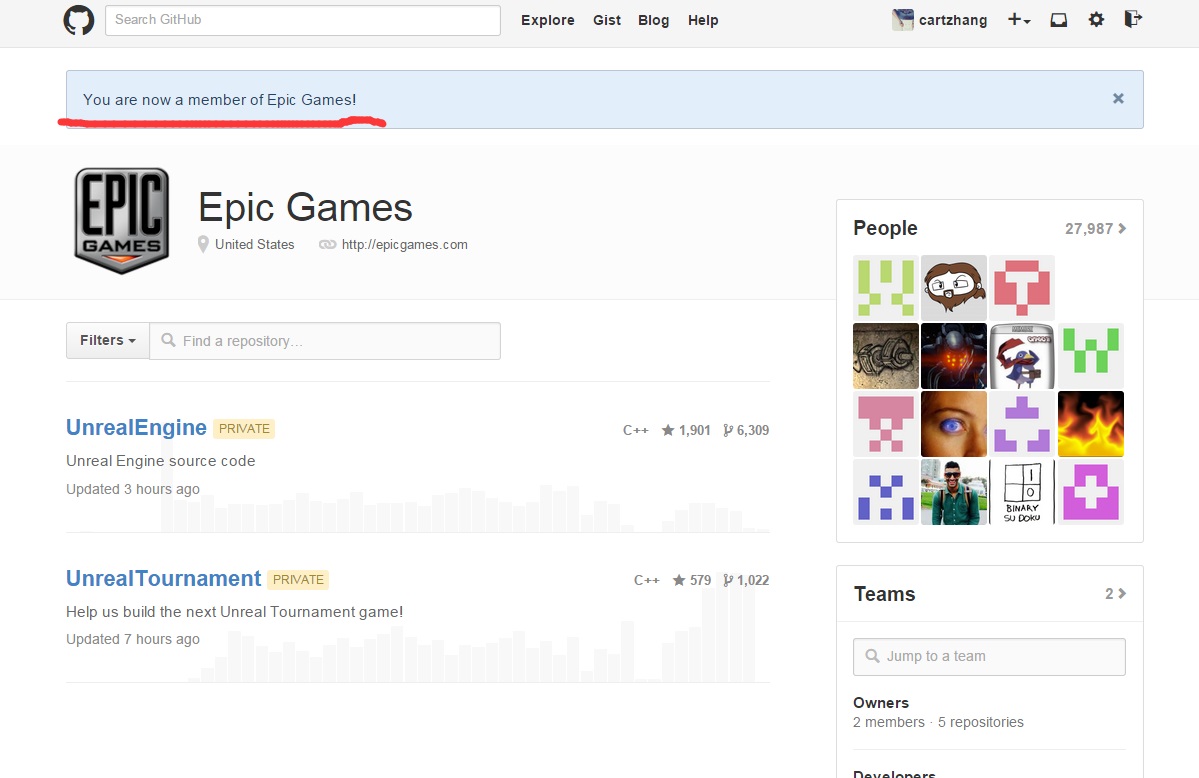 三、去Github上,https://github.com/EpicGames 看到加入的按钮。