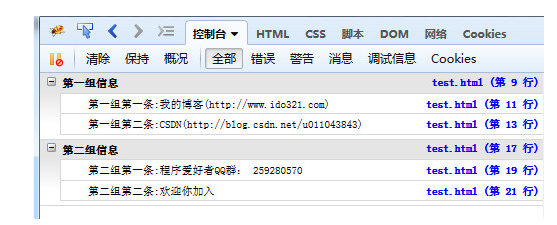 console.log("第一组第一条:我的博客(http://www.ido321.com)");