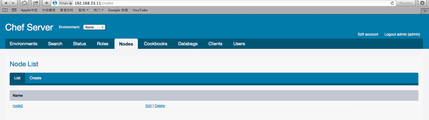 二是直接在浏览器中打开 Chef Server 的页面: