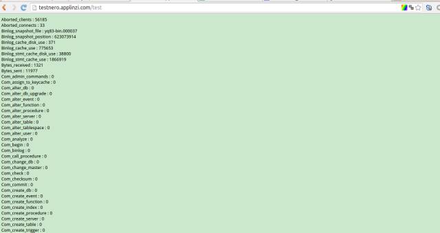 String driver = "com.mysql.jdbc.Driver";String username = System.getenv("ACCESSKEY");String password = System.getenv("SECRETKEY");String dbName = System.getenv("MYSQL_DB");String host = System.getenv("MYSQL_HOST");String port = System.getenv("MYSQL_PORT");String dbUrl = "jdbc:mysql://"+host+":"+port + "/" +dbName;try { Class.forName(driver); Connection conn = DriverManager.getConnection(dbUrl,username,password); Statement stmt = conn.createStatement(); ResultSet rs = stmt.executeQuery("show status"); while(rs.next()){ response.getWriter().println(rs.getString("Variable_name") + " : " +rs.getString("value")); }} catch (ClassNotFoundException e) { e.printStackTrace();} catch (SQLException e) { e.printStackTrace();}