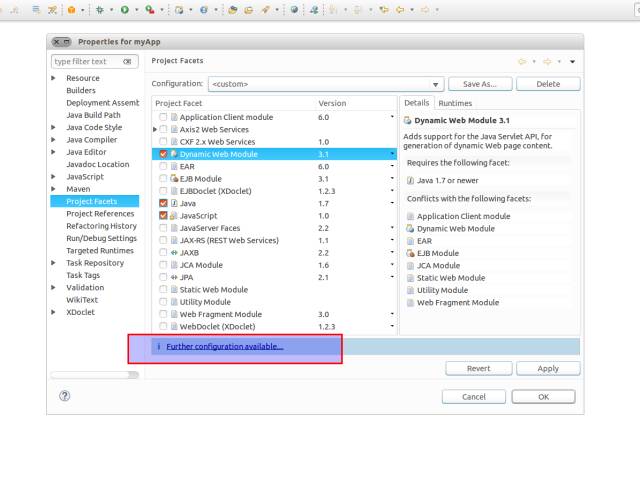修改下 Dynamic Web Module,改成 3.1 版本(如果点击下面提示无法改变版本的话,就先反选 Dynamic Web Module 然后确定,在重新进入这个界面在勾选即可修改)。如下图: