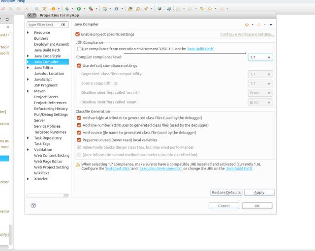 改下 JDK,点击项目右键 ->proerties->java compile,如下图: