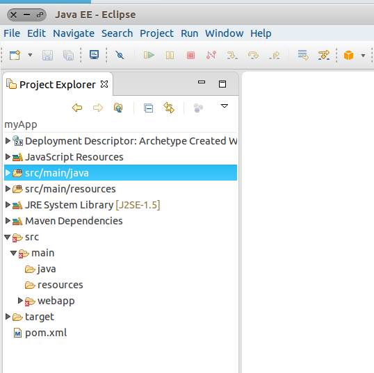 首先我们建立一下源码目录,在 src->main 下面新建一个文件夹 java,然后就可以看到如图的应用结构了: