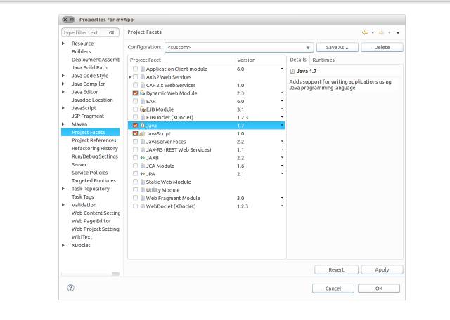 这里还有一个注意的地方,建立好新的 maven 项目之后,可能需要一些简单的配置,如果默认配置好了可以忽略了,主要注意两个方面的配置,一是 Servlet 版本,一是 JDK 版本,以及项目结构。