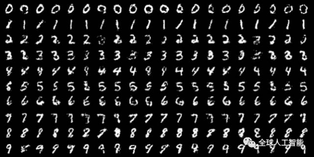 第一篇文章,在 MNIST 手写数据集上生成的结果如下图: