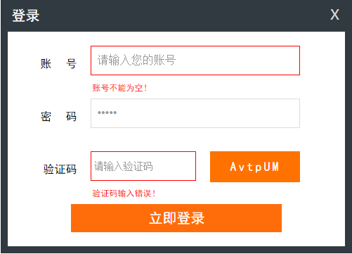 备注:这段JS代码中不仅包含了登录对话框的验证部分,其实也包含了注册对话框的验证.