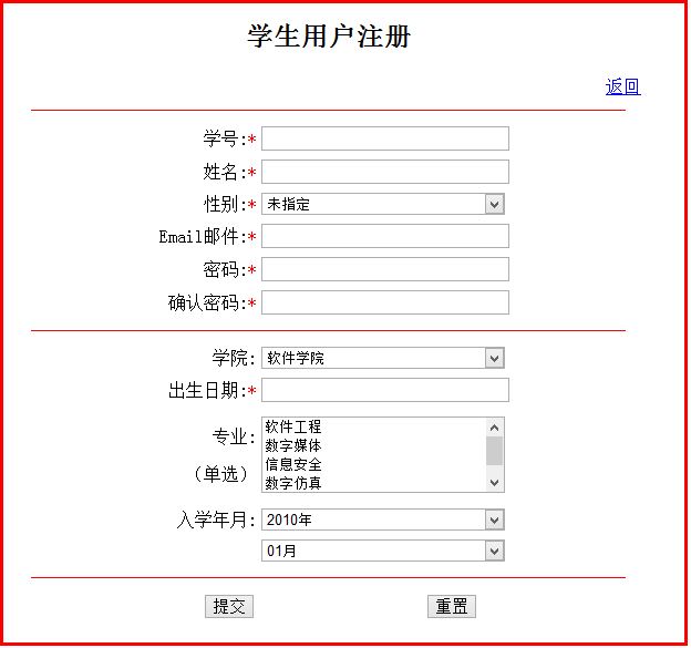 <td colspan="2" align=center><H2>学生用户注册</H2></td>