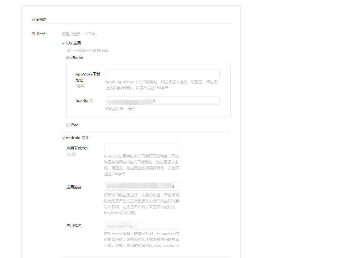 注:如果需要ios 和 安卓 使用,请注意上图 将ios和android应用都勾选上